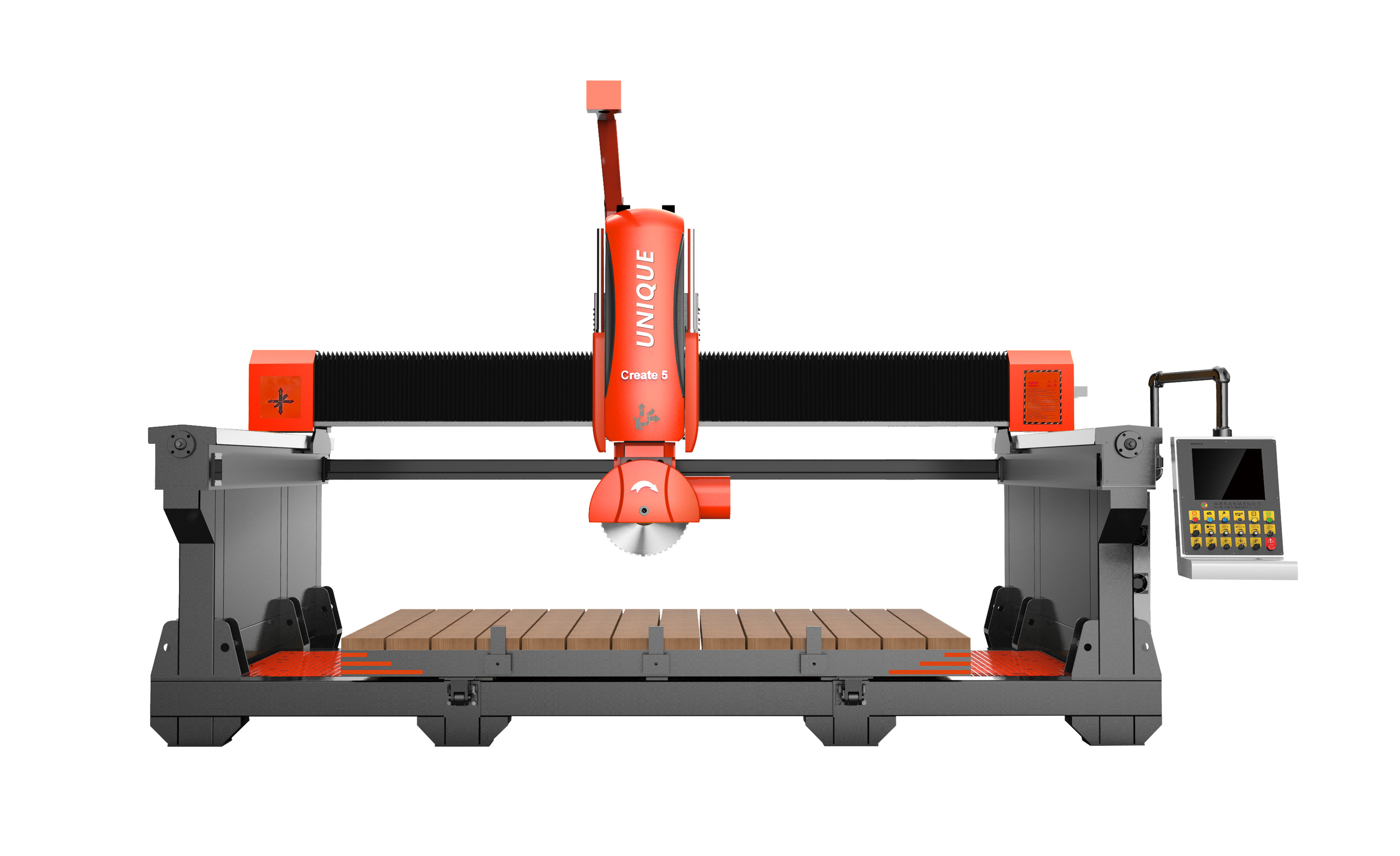 Οι λειτουργίες επεξεργασίας του περιλαμβάνουν αυθαίρετες γραμμές, πλακέτες σε σχήμα ανεμιστήρα, λεκάνη πλύσης και ειδικά σχήμα προφίλ άκρων, κλπ. Ο εξοπλισμός έχει πολλαπλές λειτουργίες επεξεργασίας, ευρεία εφαρμογή,μικρό χώροΕίναι ένα εξαιρετικό εξοπλισμό για την επεξεργασία της πέτρας.